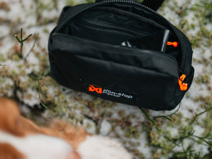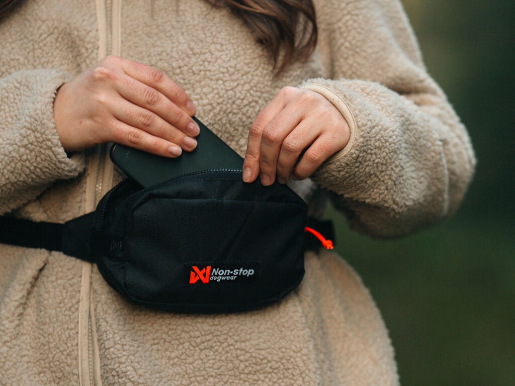 The Trail quest fanny pack from Non-stop dogwear offers a practical solution for dog owners. It features an internal mesh pocket for waste bags, a hidden zippered pocket for valuables, and a tunnel pocket for versatile wear. Large accessory loops provide additional storage, while the Duraflex® buckle ensures a secure fit.